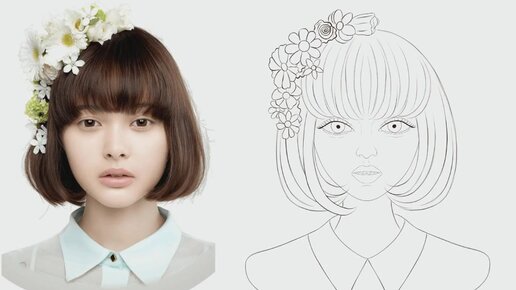 Мультяшная стилизация девушки с цветами на голове