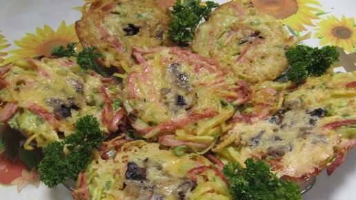 Драники с колбасой и грибами
