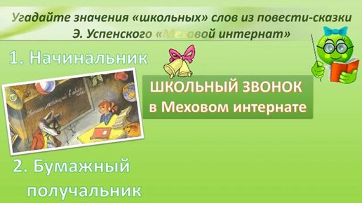 Викторина "Школьные угадайки" из произведения "Меховой интернат" Эдуарда Успенского