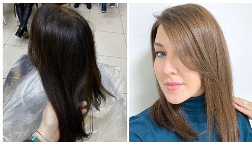 Из черного в светлый русый 7.0 . Осветление чёрного цвета и тонирование в натуральный русый оттенок. Смывка черного цвета,