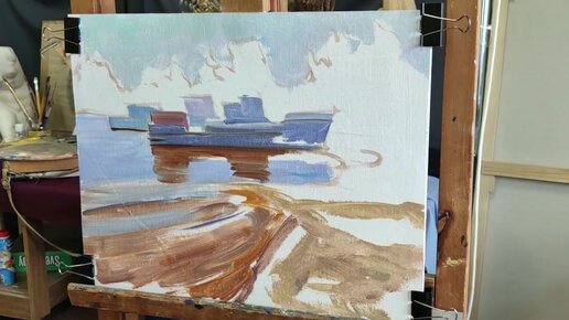 Мастер-класс. "Этюд. Кораблики" картон, масло