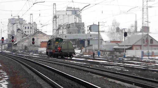 Тепловоз ЧМЭ3-5733 едет с платформой. Часть 2.