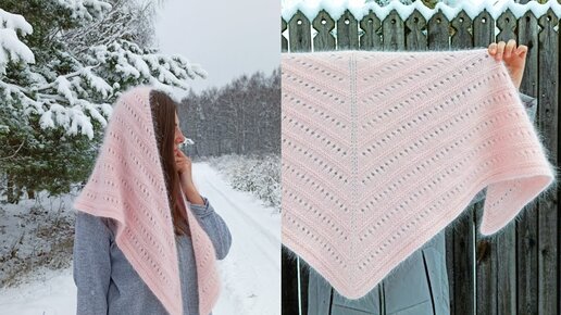 Шаль из пуха норки спицами с красивым узором подробный мастер класс по вязанию