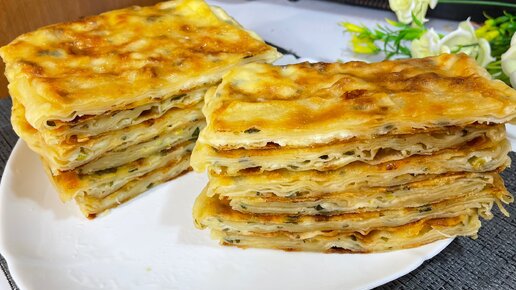 Мягкая слоистая катлама с начинкой. Сытное блюдо узбекской кухни