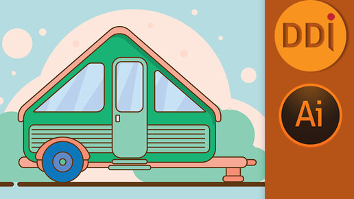 Как нарисовать небольшой дом на колесах в плоском стиле.