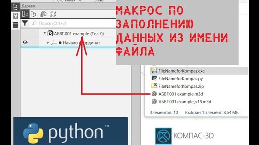 КОМПАС-3D. Python. Макрос по заполнению свойств 3D модели из имени. Разбор кода. Компиляция EXE