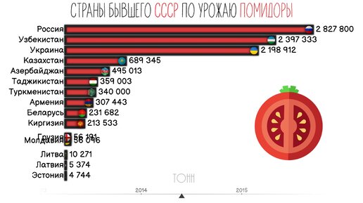 СТРАНЫ БЫВШЕГО СССР ПО УРОЖАЮ ПОМИДОРЫ.СРАВНЕНИЕ СТРАН.СТАТИСТИКА ИНФОГРАФИКА.СТАТИСТИКА СТРАН СНГ🍅