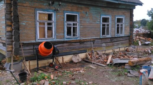 Замена нижнего венца и восстановление фундамента. Поднятие дома домкратами..