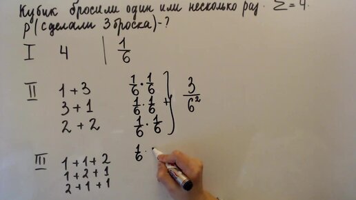 #46 Кубик бросили один или несколько раз Сумма выпавших очков равна 4 Вероятность что сделано три броска