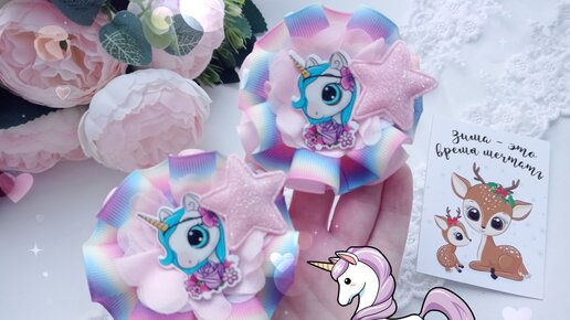 Бантики из репсовой ленты "Единорог" 🦄 бантики в складку при помощи шаблона🌺 #канзашиотнаташи