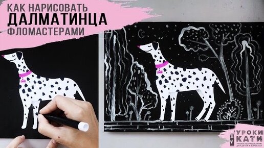 Как нарисовать щенка далматинца фломастерами, пошаговый урок для детей и взрослых