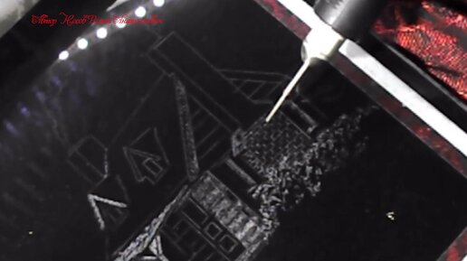 Гравировка бормашиной картины на стекле.Хижина,рыбак,уединение.