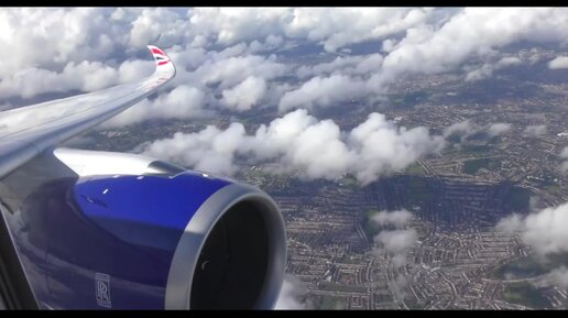 Приземление в аэропорту Хитроу, Лондон. Airbus A350.