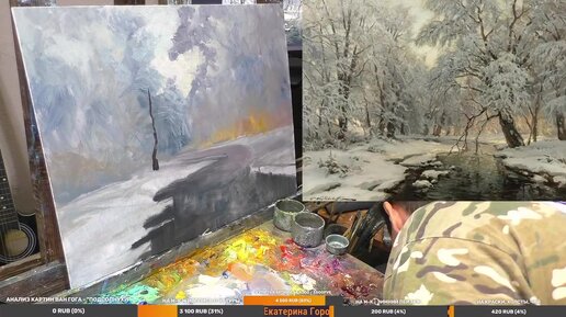 Урок живописи маслом. Как нарисовать зимний пейзаж.