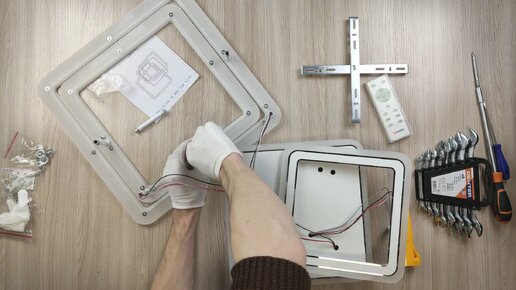 Сборка квадратных современных потолочных светодиодных люстр с пультом SOLEN RGB 90W и SONNE 80W 3S от Estares