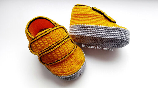 Пинетки ботиночки крючком на липучках/ вязаные пинетки крючком
