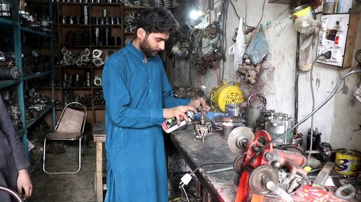 Этот молодой автомеханик блестяще ремонтирует автостартер.