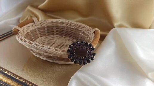 Брошь вышитая бисером с красным агатом и жемчужинами Swarovski, авторская, art b20