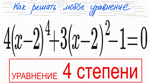 №5 Уравнение 4 степени 4(x-2)^4+3(x-2)^2-1=0 Замена в уравнении (x-2)^2=t Как делать замену в уравнении
