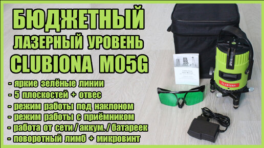Недорогой зелёный лазерный уровень Clubiona M05G с большим функционалом с Aliexpress
