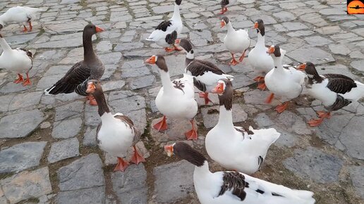 Турецкие гуси очень прожорливые - за три минуты съели целый батон!