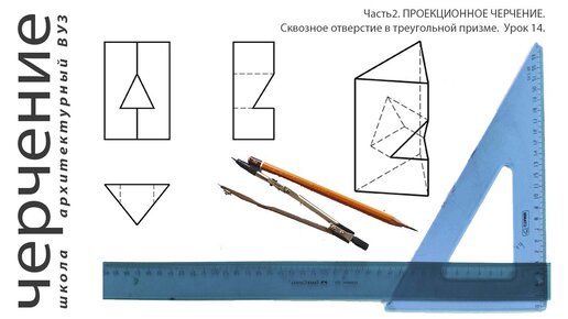 Сквозное отверстие в треугольной призме. Урок 14. (ПРОЕКЦИОННОЕ ЧЕРЧЕНИЕ)