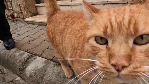 Рыжий кот подходит к камере и очень громко мурлычет - это так мило