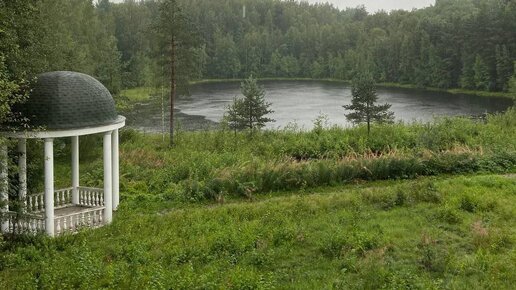 Оформляем свадьбу в усадьбе с видом на озеро. Делаем декор на высоких колоннах под проливным дождем