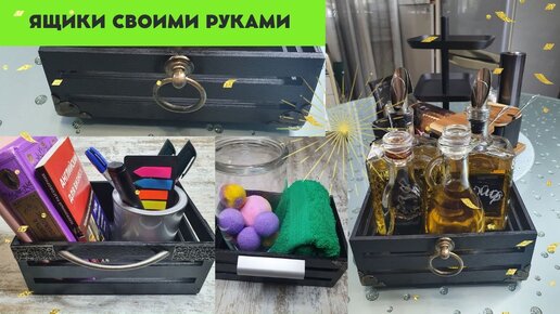 Декор ящиков из фанерных заготовок. Чёрные акценты. Стильно и тенденциозно.