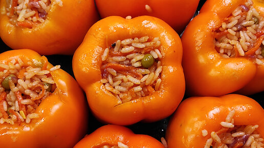 Постные фаршированные перцы с рисом, морковкой и зеленым горошком
