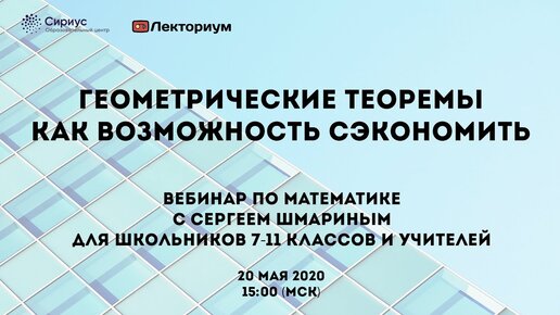 Геометрические теоремы как возможность сэкономить | Вебинар по математике с Сергеем Шмариным