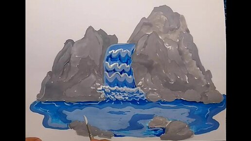 Как нарисовать водопад \\ рисунок красками // поэтапное рисование \\ ускоренный урок