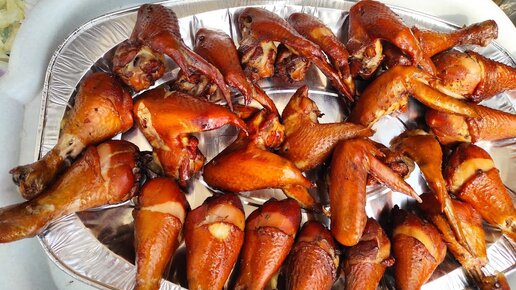 Куриная грудка,голени горячего копчения .