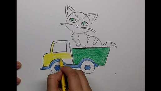 Как нарисовать котенка \\ Кошка на машине // нарисовать грузовик