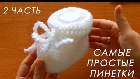 ❤️ МИЛО И ОЧЕНЬ ПРОСТО!!! 🎉 Пинетки крючком "ОБЛАЧКО" ( 2 часть) Crochet booties with subtitles