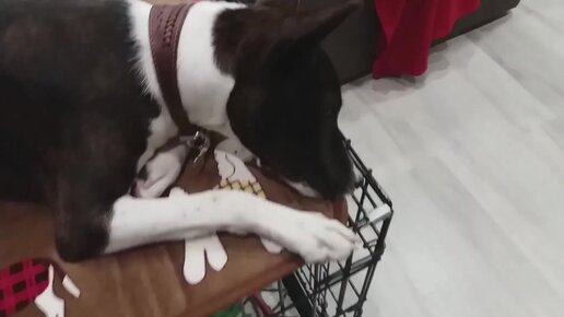 Фаргоша хочет съесть нарисованную собачку. Упрямству басенджи можно позавидовать.