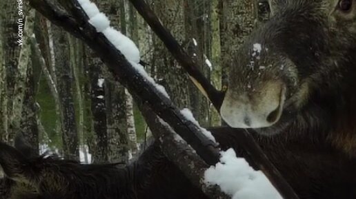 В Нижне-Свирском заповеднике лосенок и его заботливая мама пообедали перед фотоловушкой