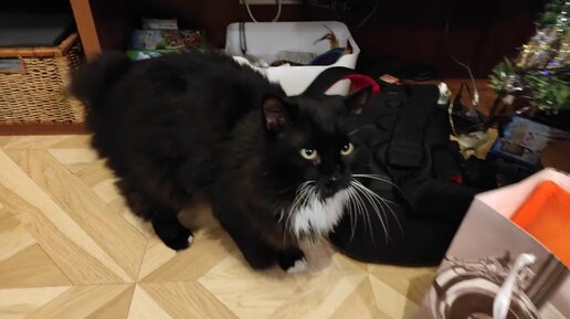 Подарки для кота Маси на Новый год, кот нашел подарки