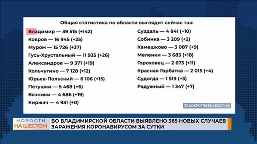 Во Владимирской области выявлено 365 новых случаев заражения коронавирусом за сутки