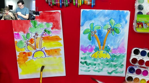 Рисуем МОРЕ и ПАЛЬМЫ - уроки рисования для школьников