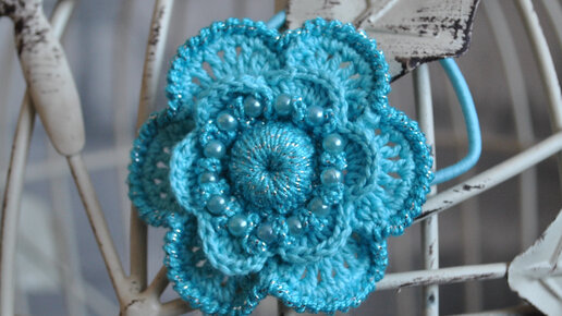 КРАСИВЫЙ ЦВЕТОК КРЮЧКОМ С БУСИНКАМИ. Можно связать резинку для волос или использовать для ирландского кружева. Вяжем вместе!!