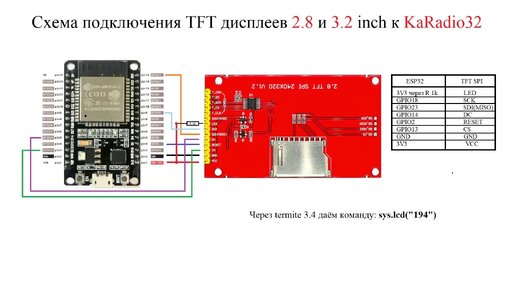 Подключение к KaRadio32 TFT дисплеев 2.8 и 3.2 дм