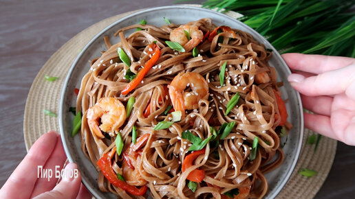 Гречневая лапша (соба) с креветками
