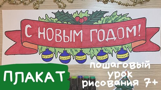 Плакат на новый год. Плакат на новый год своими руками. Новогодний плакат рисунок. Карандаши и краски.
