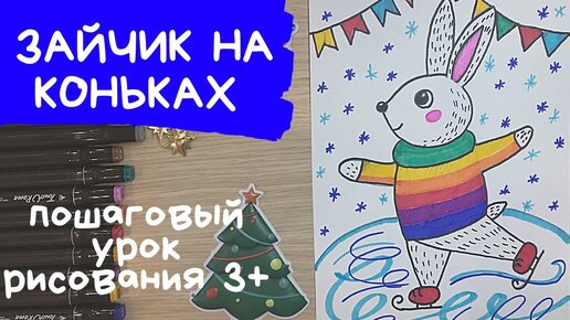 Заяц рисунок для детей. Дети катаются на коньках рисунок. Легкие Зимние рисунки для детей. Рисунок маркерами. Карандаши и краски
