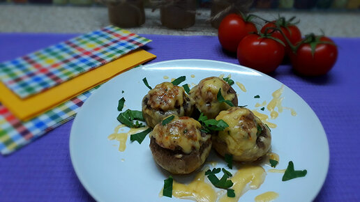Фаршированные грибы с мясом. Моя любимая закуска из грибов. Делюсь рецептом