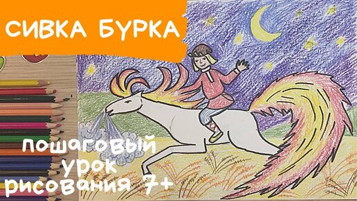 Лошадь рисунок. Лошадь рисунок для детей. Рисунок к сказке Сивка бурка. Всадник рисунок Конь рисунок. Карандаши и краски
