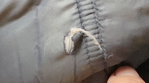 Зашить дырку на рукаве куртки заплаткой из самой куртки.