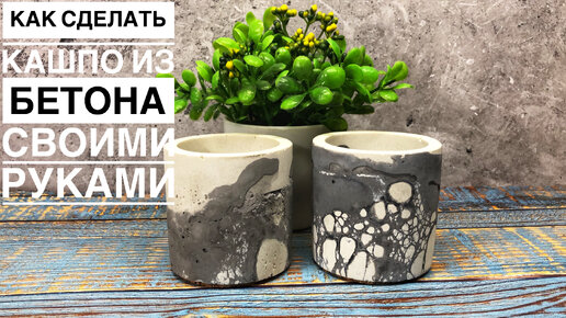 Кашпо из бетона в необычной технике