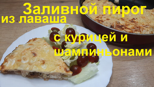 Заливной пирог из лаваша с куриным филе и шампиньонами